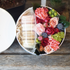 This lovely gift box is filled with beauty for all of your senses. Beautiful spray roses are complemented by carnations, mini hydrangea, thistle and hypericum. We’ve added 4 delectable Macarons for a sweet treat!