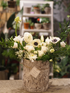A lush, botanical nod to embracing any special event. This arrangement is bursting with white Roses, Anemone, Ranunculus, Mum, and Lisianthus in a bed of Fern and Ruscus, perfect to add fresh spirit to any room.