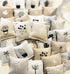 Assorted linen sachets with illustration images: Trees, Flowers, Cactus, Dragonfly, Key.