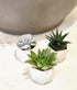 Three succulents will be randomly selected and placed in white geometric ceramic pots.