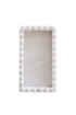 The White Marble Scalloped Bridge Tray by Luxe B Co is crafted from high-quality marble. It features a scalloped edge, which gives it a soft, delicate look to your space.