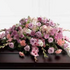 Casket saddle with wet floral foam foliage : Lavender roses, Pink Carnations, Gladiolus, Chrysanthemums, Stock, Hydrangea and lush greens